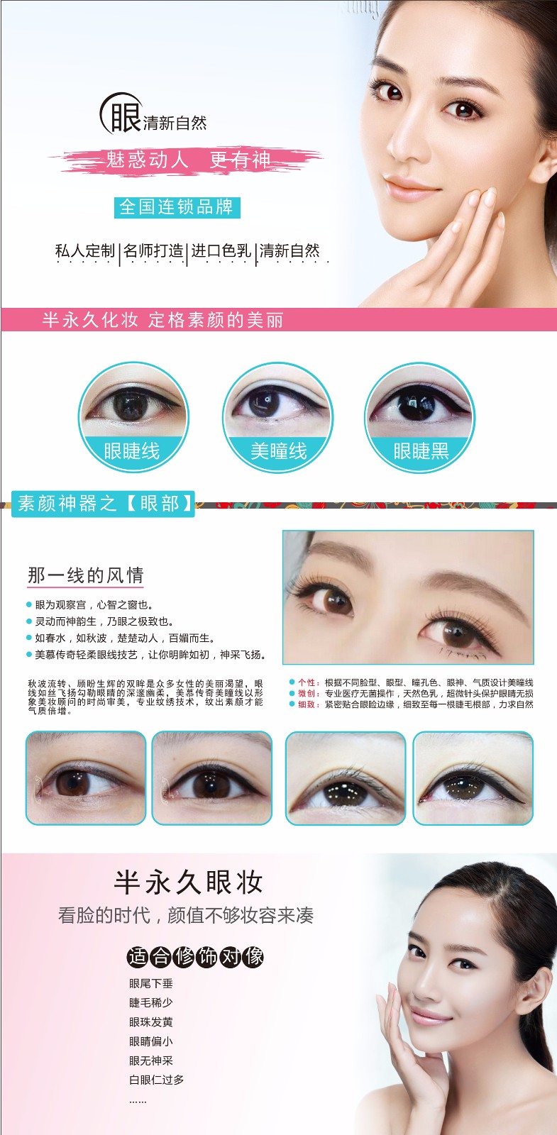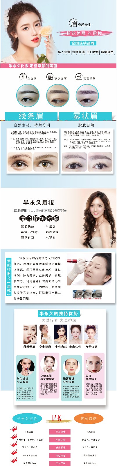 半永久化妆术是整形美容术和化妆术相结合衍生的一项美容技能。做过这种美容术后,人的眉毛、双眼和嘴唇能够呈现出化妆效果。半永久化妆又被称为细微细胞内色彩插入、韩式定妆、纹身皮肤涂植、半永久化妆、持续性强化化妆术等,美国称为细微永久美妆、日本称为持久性美妆、韩国称为持久化妆,我们国内则称为韩式定妆。这个技术是早几年就有的,近两年发展最快,为更多人所知。半永久化妆,因为其独特的半永久的化妆效果而闻名。是不用卸妆的高级化妆技术。