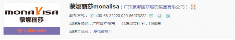 广东蒙娜丽莎服饰集团有限公司,是一家专注于皮具的研发、设计、生产、销售及运营的集团企业,由广州市意莎皮具有限公司、广州锐派皮具有限公司、广州蒙娜丽莎鞋业有限公司组成,是一家大型专业皮具集团公司。