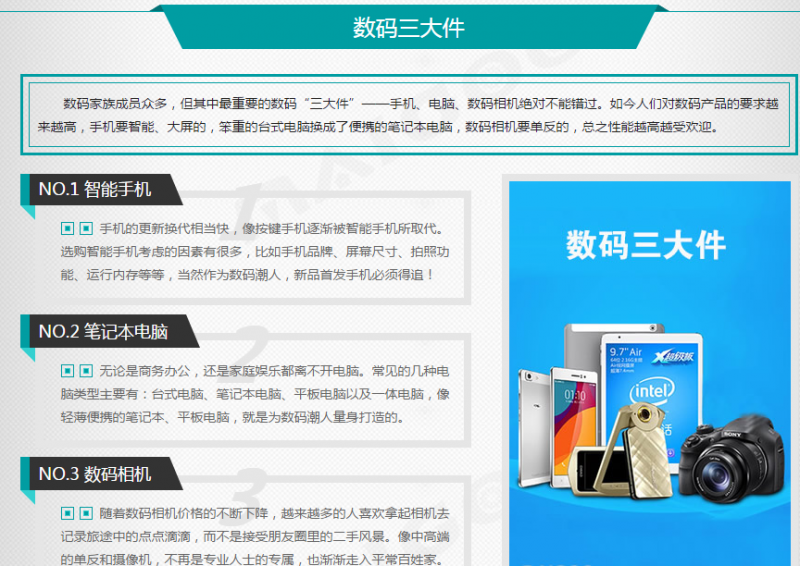 数码家族成员众多,但其中最重要的数码“三大件”——手机、电脑、数码相机绝对不能错过。如今人们对数码产品的要求越来越高,手机要智能、大屏的,笨重的台式电脑换成了便携的笔记本电脑,数码相机要单反的,总之性能越高越受欢迎。