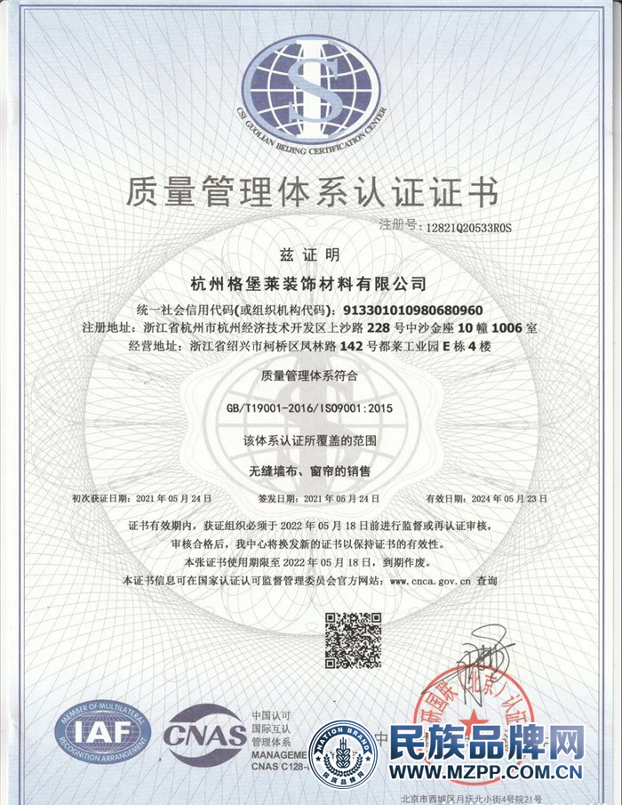 严控质量,高品质获权威认可!雅菲壁布连续4年通过ISO9001认证
