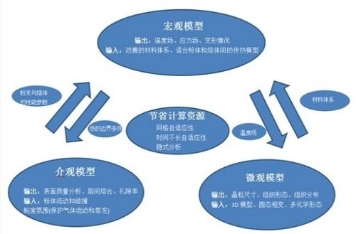 金属SLM增材工艺宏观、介观、微观尺度仿真分析的关系如图所示。