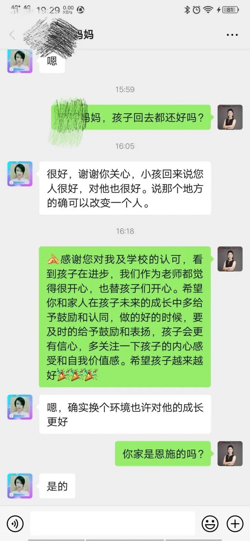 我们开设学校的初衷就是为了让青少年教育问题不再困扰多少本该幸福的家庭,在对问题少年进行教育之后,得到了很多家长的积极回馈,这让我们对这份事业更加有信心,看到孩子们摆脱阴霾,积极的面对学业生活,和朋友、家人友好热情的相处,我们倍感欣慰。