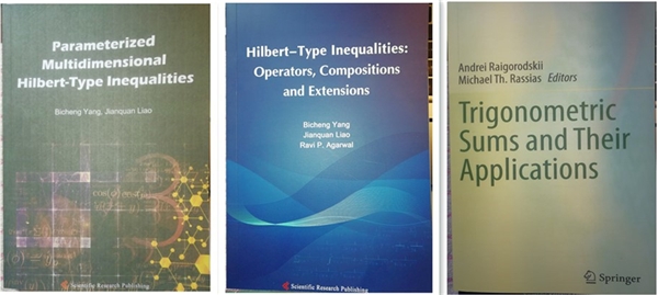(2)Bicheng Yang, Jianquan Liao, Ravi P. Agarwal. Hilbert-Type Inequalities: Operators, Compositions and Extensions (45万字), Scientific Research Publishing, USA 2020. (杨必成,廖建全,Ravi P. Agarwal. Hilbert型不等式:算子,合成及推广)