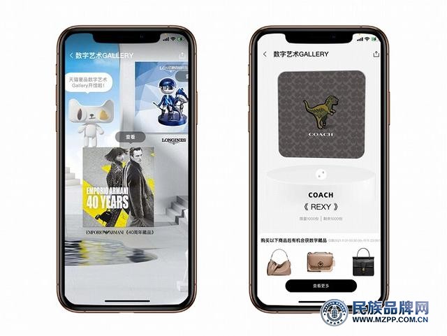 今年天猫双11,全球六大奢侈品品牌Burberry、Longines、Emporio Armani、Coach、Balmain、LaPerla国内首次集体发布数字藏品。这意味着,当消费者在网上购买喜欢的实体商品时,一个基于区块链技术、独一无二的数字藏品也同时归到名下。