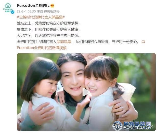 当天,棉花时代官方微博发布了代言人的大幅广告图片。影片讲述了郭晶晶角色转换的心路历程,对孩子的身心教育,以及对环保事业的投入。郭晶晶温柔从容的生活态度,让大家感受到她与自己、与家人、与自然的相处之道,守护着每一份爱与安心。